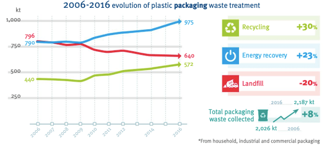 Un classement européen du taux de plastique recyclé dans cette filière a été établi par PlasticEurop. La France est à la 15ème place de ce classement. De plus, la France n’est pas un pays pionner parmi les pays légiférant les enfouissements de matières plastiques comme d’autres puissances européennes telle que l’Allemagne.
