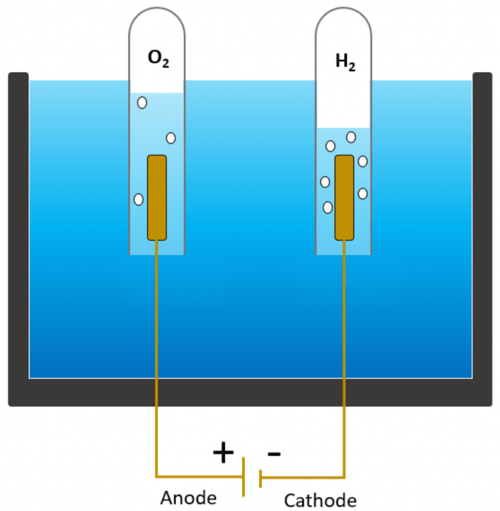 La manière la plus commune de produire de l’hydrogène est sûrement l’hydrolyse de l’eau. Avec une anode et une cathode plongée dans l’eau, il ne reste qu’à appliquer un courant électrique pour séparer l’hydrogène et l’oxygène qui la composent.