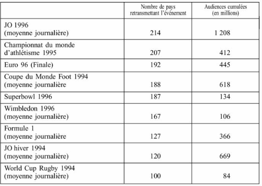 “La télévision et le sport ne sont pas nés ensemble pourtant depuis un demi-siècle, ils grandissent côte à côte » Monique Berlioux, Comité International Olympique. (BROCHAND C., 1992.)