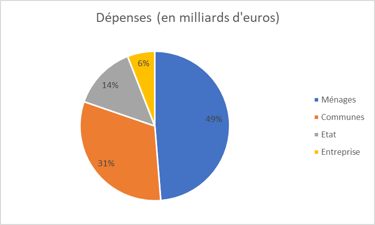 - Les communes et collectivités avec 11,2 milliards d’euros de dépenses liées aux investissements et fonctionnements des équipements sportifs, subventions aux clubs et autres dépenses structurelles ou administratives
