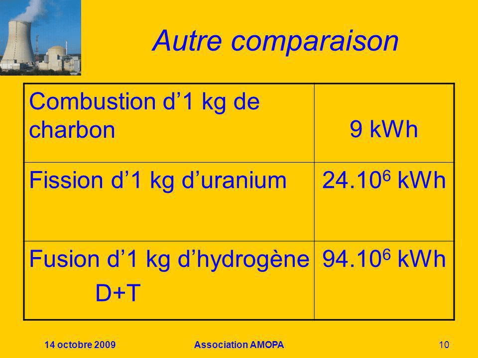 Du point de vu énergétique, la fusion permet une libération d’énergie environ 4 fois supérieure à celle de fission pour une même masse de matière.