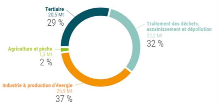 L’industrie est le secteur d’activité le plus émetteur de déchets en France en 2018 avec un score de 37% des déchets totaux