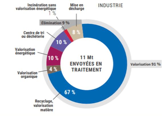 On remarque que la valorisation concerne 91% de nos déchets industriels non dangereux.